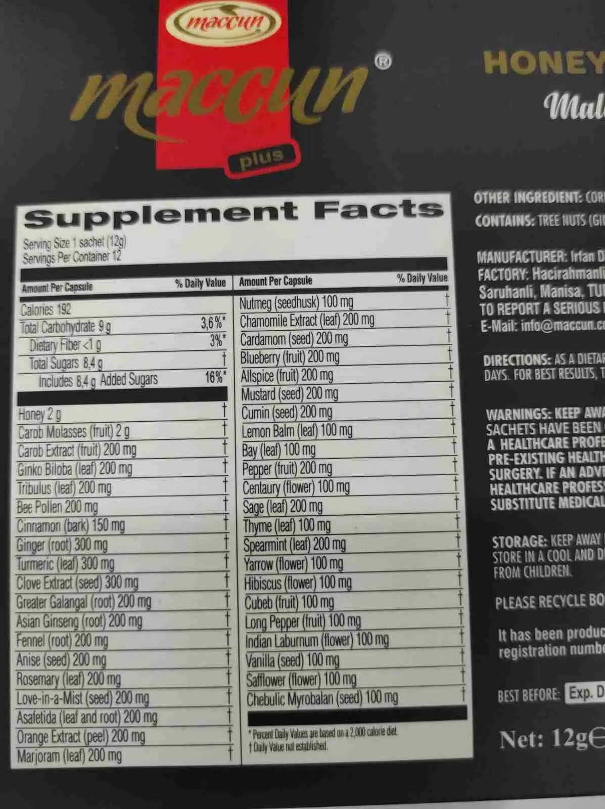 مكونات عسل maccun plus التركي :