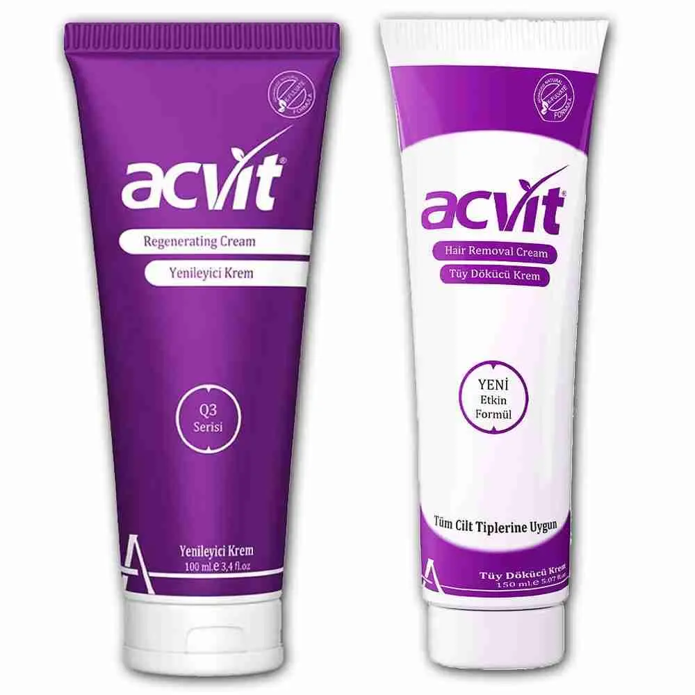 يتم إنتاج كريم Acvit لإزالة الشعر بالأعشاب وتقليله من مستخلص قصب السكر وخلاصة الحليب ومستخلص الحمضيات وخلاصة التفاح وخلاصة العنب وفيتامين C وفيتامين A ومستخلص عشب البحر ومستخلصات نباتية فعالة خاصة.