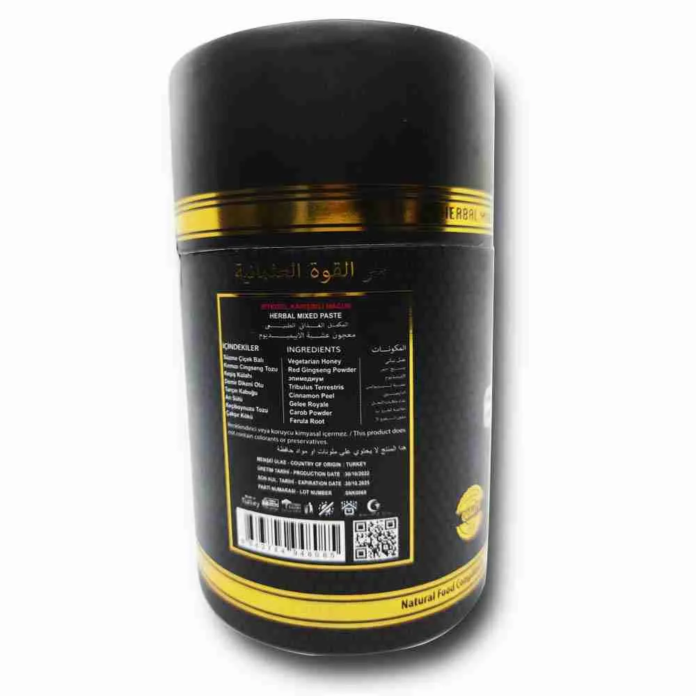 المعجون يعتمد على عسل تركي خام ممزوج بخلاصة الإبيميديوم والجينسنغ الأحمر وغذاء ملكات النحل—وهي تركيبة قوية تم استخدامها منذ آلاف السنين في الطب التقليدي لدعم الصحة الجنسية والبدنية.