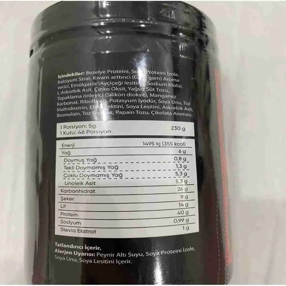 بروتين البازلاء ، عزل البروتين ، سترات الكالسيوم ، مكثف (Ggam) منكهة ، مستحضر (عباد الشمس يزيل كلوريد الصوديوم ، حمض L-Ascorbic ، أكسيد الزنك ، مسحوق حليب منزوع الدسم ، مضاد للتكتل (ثاني أكسيد السيليكون) ، كربونات المنغنيز ، ريبوفلافين ، ليوديد البوتاسيوم ، دقيق الصويا ، مسحوق مالتوديكسترين ، الدردار ، فول الصويا ليسيثين ، حمض الأسكوربيك ، بروميلين ، مسحوق أوقية الفاكهة ، مسحوق البابين ، نكهة الشوكولاتة