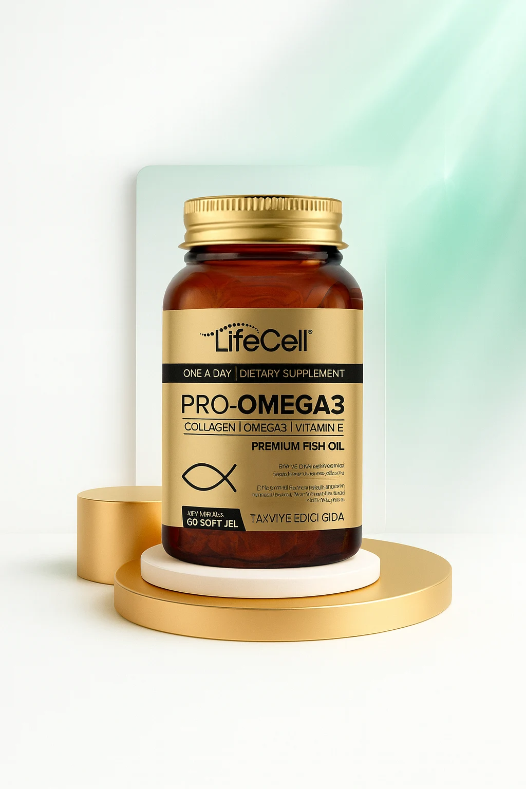 LifeCell Pro-Omega3 هو مكمل غذائي يومي (One A Day) صُمّم لدعم الوظائف الحيوية الأساسية في الجسم، بدءًا من صحة القلب والدورة الدموية، مرورًا بوظائف الدماغ والتركيز، وصولًا إلى العناية بالبشرة والمفاصل وحماية الخلايا من الأكسدة.